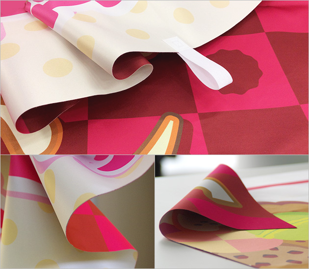 遮光スウェードを使用したのぼり旗は、表に印刷したデザインが裏に全く透けない為、表と裏の両面に印刷することができます。