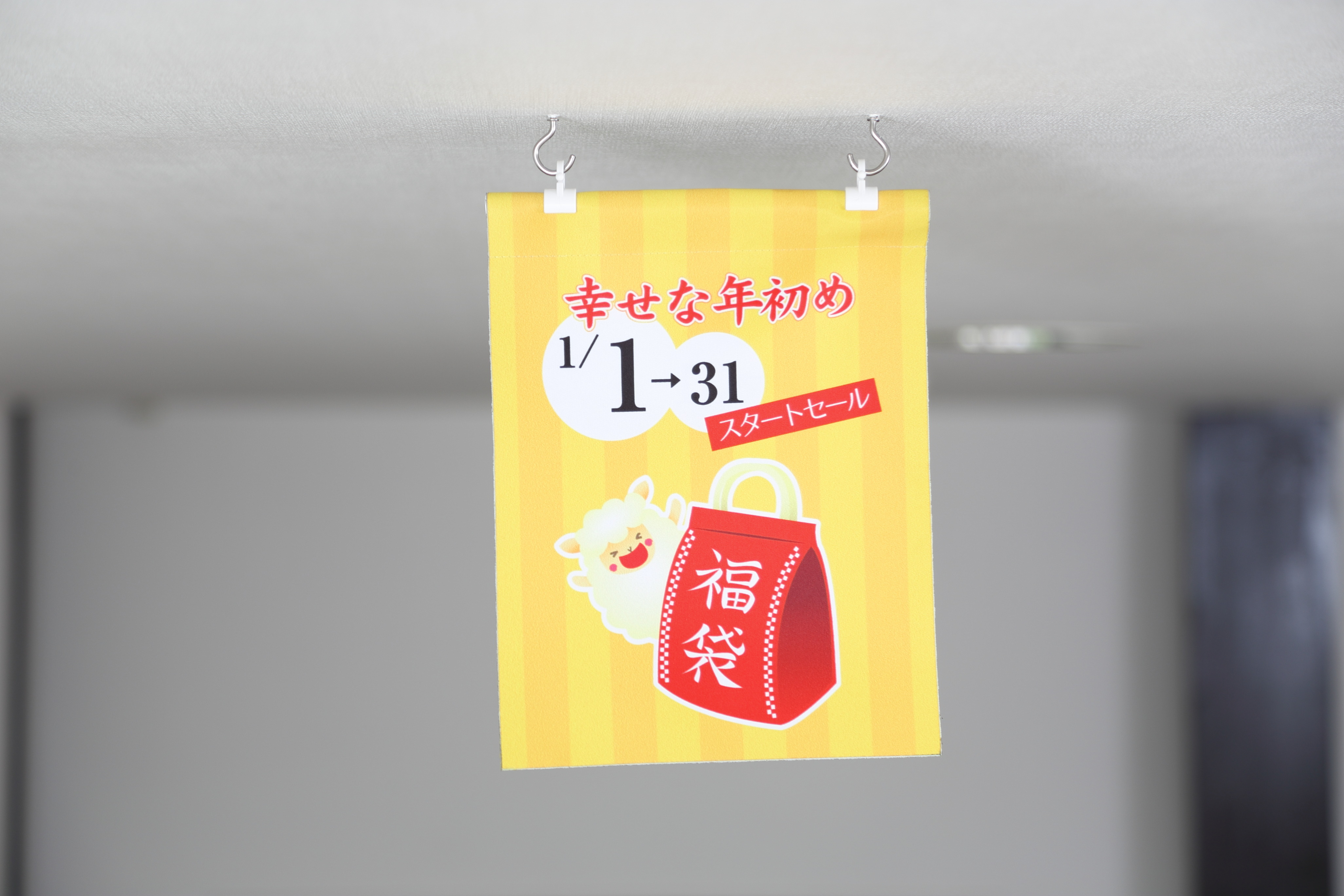 いずれの生地でも無料で両面印刷ができます。裏からもデザインを見る事が出来るので人が行きかう場所に最適です。